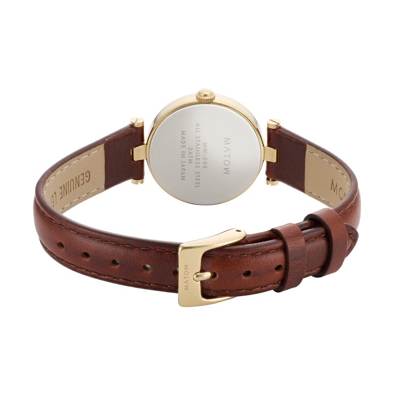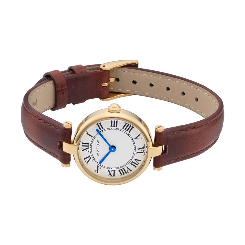 「Aura」は、時を重ねることで生まれる気配や、装いに自然と溶け込む存在感から着想を得たコレクション。端正なラウンドケースに、クラシカルなローマ数字の文字盤、そしてやわらかな表情を持つレザーストラップを組み合わせ、手元に静かな品格をもたらします。過度な装飾を施さず、光の当たり方や所作によって印象が変わるデザインは、身に着ける人それぞれの雰囲気をそっと引き立てるもの。MATOWが5年間大切にしてきた「時間を慈しむ」という価値観を、よりシンプルで本質的なかたちへと昇華したコレクションです。