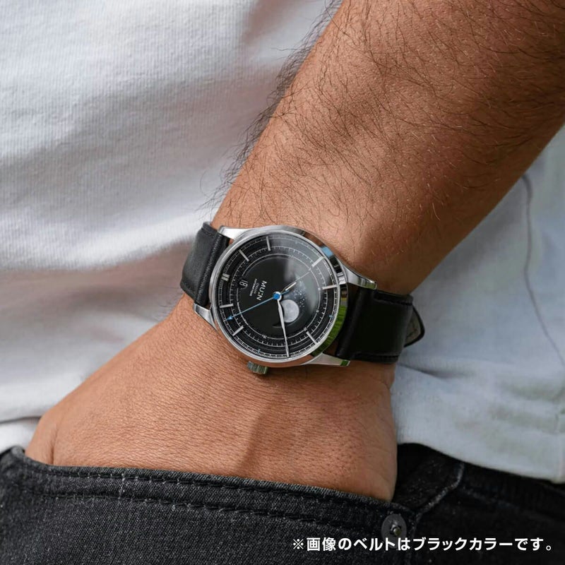 日付・昼夜表示・ムーンフェイズ機構を備え、PH Saner工房にて±7秒/日の高精度で調整されています。