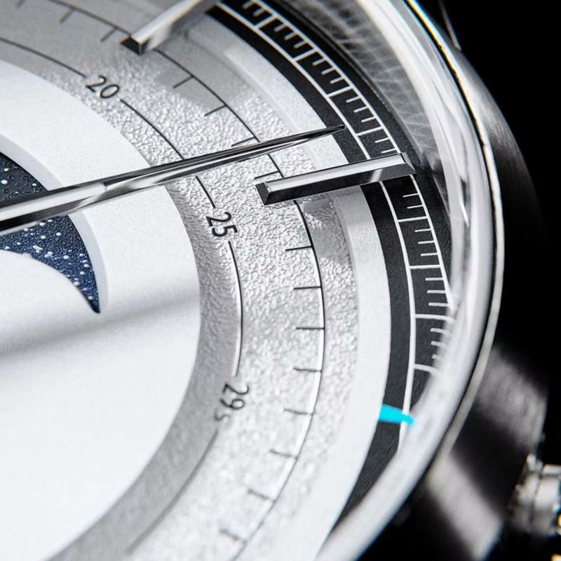 ダイヤルは二層構造で、中央のムーンフェイズを一段下に配置。