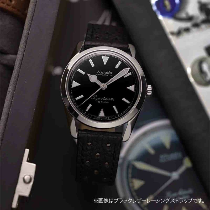 Nivada Grenchen / ニバダ グレンヒェン スーパーアンタークティック 35mm ブラック ホワイトマーカー ルミノバ ブラウン レザーレーシングストラップ