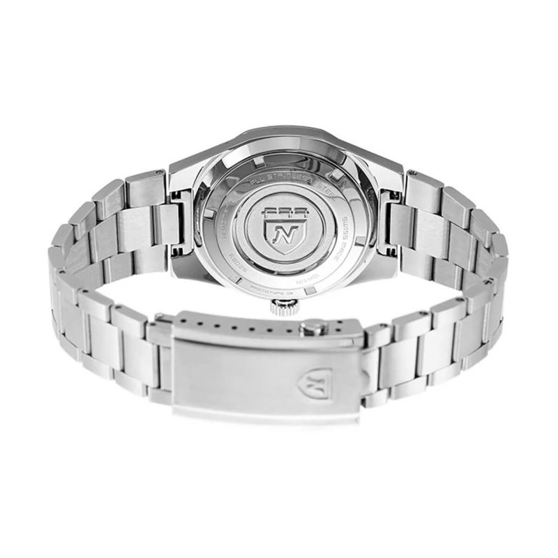 ムーブメントにはスイス製の自動巻きSOPROD P024が搭載され、38時間のパワーリザーブを備えている。すべての腕時計は、Nivada Grenchenの認証基準と品質基準に従い、スイスで製造されており、100メートル(10気圧)の防水性とスクリューダウンクラウンを備え、水中でも問題なく使用することができる。