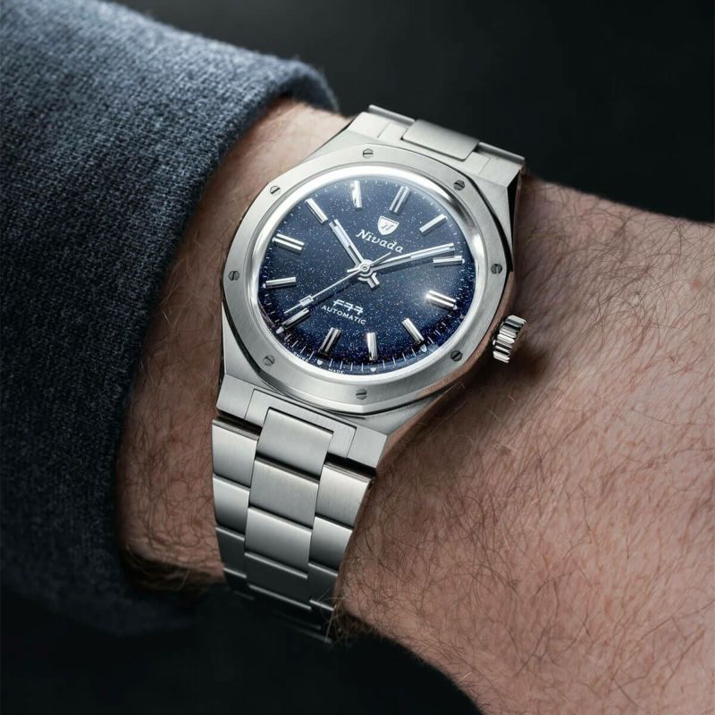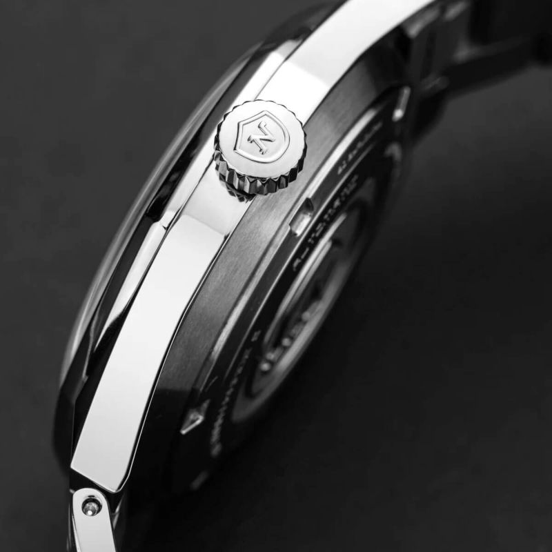 ムーブメントにはスイス製の自動巻きSOPROD P024が搭載され、38時間のパワーリザーブを備えている。すべての腕時計は、Nivada Grenchenの認証基準と品質基準に従い、スイスで製造されており、100メートル(10気圧)の防水性とスクリューダウンクラウンを備え、水中でも問題なく使用することができる。