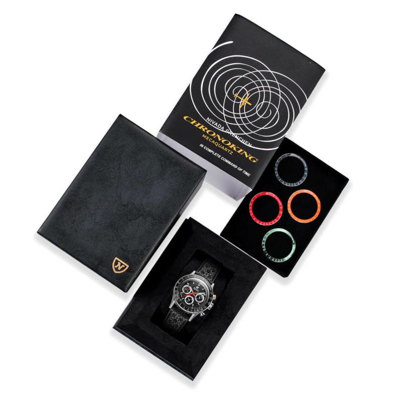 Nivada Grenchen / ニバダ グレンヒェン クロノキング メカクォーツ レーシング ブラック トロピックラバーストラップ / インターチェンジャブル5ベゼルセット