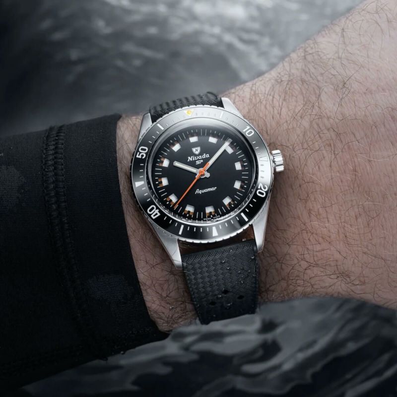 1960年代後半に登場した、知る人ぞ知るダイバーズウォッチを現代に甦らせた「Aquamar(アクアマー)」コレクション。Nivada Grenchenが誇る南極探検シリーズ“Antarctic”の血統を受け継ぎながらも、クラシックな魅力とプロフェッショナル仕様を併せ持つ、実用性と収集価値を兼ね備えたタイムピースです。
