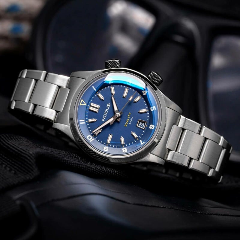 Nodus Duality IIは、70年前に登場したダイバーズの系譜を受け継ぎつつ、現代的なエッジを加えて再構築された次世代のツールウォッチです。伝統的なコンプレッサー構造にインスパイアされたダブルクラウン設計をベースに、最新の製造技術と“Efficient Design(効率的な設計)”の哲学により、スリムでありながら300mの高い防水性能を誇ります。