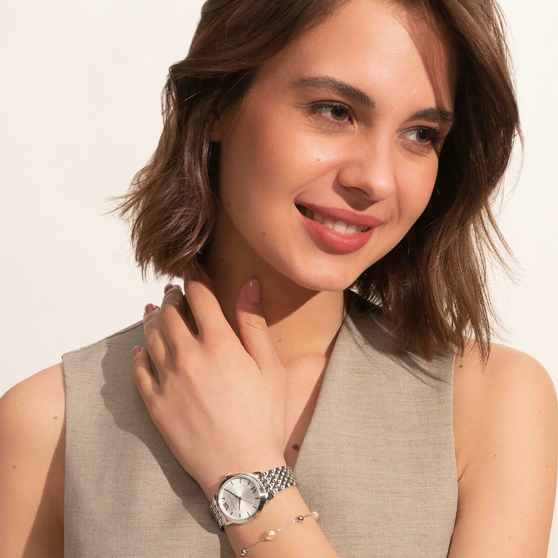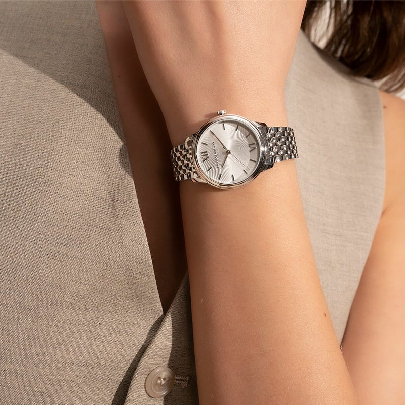 「クラシックスワール」は、その名の通りクラシックなデザインをベースとして、文字盤にスワール(渦巻き)模様を施したケース径32mmのラウンドウォッチ。 このコレクションは“時間の経過”から着想を得ており、光沢感のあるサンレイダイアルにスワールデザインを施すことで、奥行きのある質感と動きを加えている。 リューズにはイギリスの伝統的な花紋である“テューダー・ローズ”が刻印され、細部にまでこだわりを詰め込 んだ日常のエレガンスを演出。 ストラップにはステンレスのライスブレスを採用し、5種類の豊富なカラーラインナッ