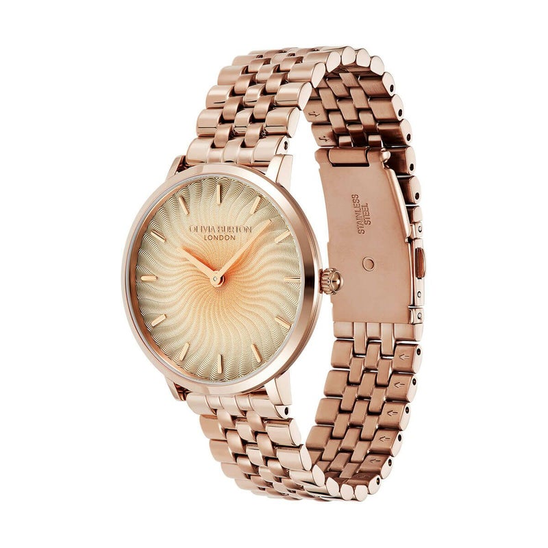 【オリジナルジュエリーボックスプレゼント】 OLIVIA BURTON / オリビア・バートン シグネチャー 35mm ラディアント サン ダブ グレー ローズゴールド ラジアル オンブル ローズゴールド ブレスレット