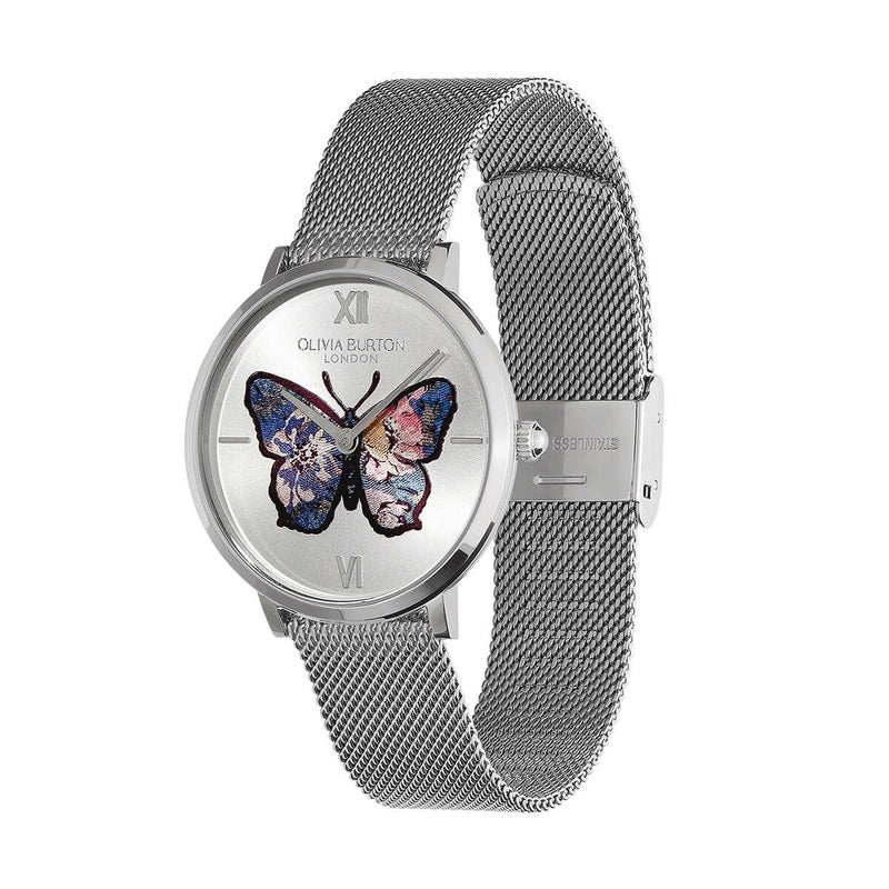 OLIVIA BURTON / オリビア・バートン シグネチャー 35mm シグネチャー バタフライ ウルトラスリム シルバー ホワイト サンレイ フローラル メッシュ