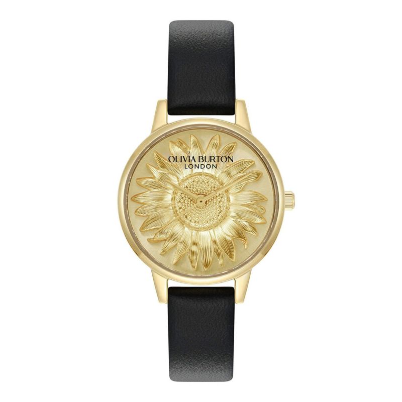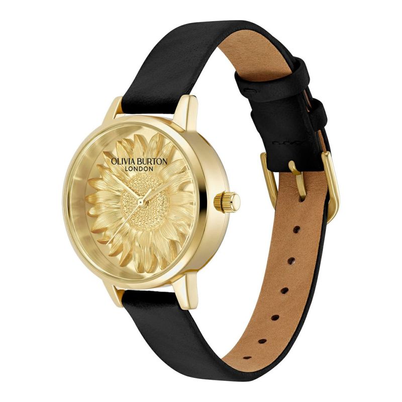 OLIVIA BURTON / オリビア・バートン 3D フラワー - ミディゴールド ブラックレザー