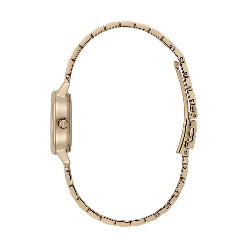 仕上げに添えたのは、フェミニンなローズゴールドプレーテッドのブレスレットストラップ。