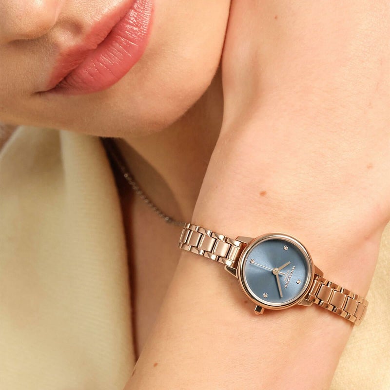 手元にそっと咲く、チョークブルーのミニウォッチ