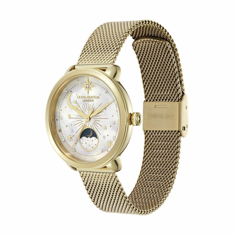 OLIVIA BURTON / オリビア・バートン セレスティアル 34mm ムーンフェイズ ホワイト ゴールドメッシュ