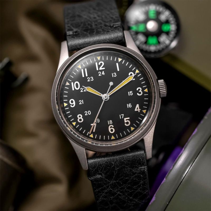 ジャングルフィールドは、1967年にアメリカ軍が発行したアイコニックなGG-W-113規格に着想を得て、視認性と信頼性を確保するためのすべての要素を取り入れています。オリジナルのGG-W-113規格は、ベトナム戦争中にアメリカのパイロットが使用した、非常に信頼性の高いツールとして広く知られています。この高性能な腕時計を提供するため、当時の仕様を可能な限り忠実に再現しました。