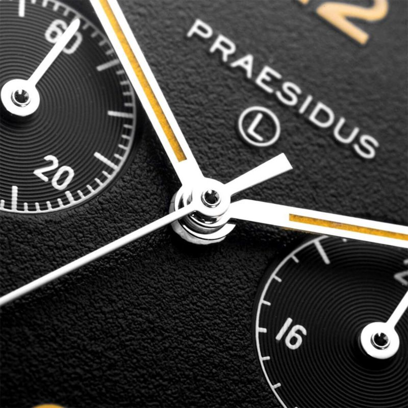 コレクション名が示す通り、PAC-76は完全に機能性を追求してデザインされた、真の70年代フィールドクロノグラフです。強い軍事的ルーツを持ちながらも、PAC-76は70年代の美学に彩られています。フィールドウォッチがファッショナブルであってはいけないなんて誰が言ったのでしょうか?オーバーサイズの12と6のインデックスや、ケースバックに施された個性的なPRAESIDUSロゴなど、パイロットクロノグラフと革新の黄金時代から復活した時計の外観と雰囲気を楽しむことができます。
