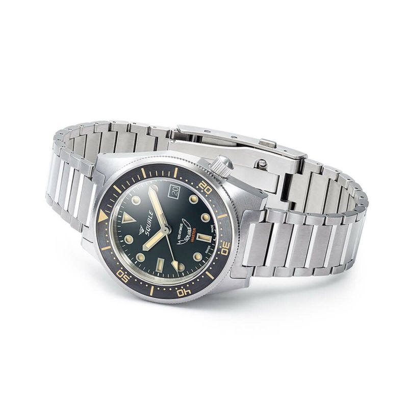 スイス・キアッソ発のダイバーズウォッチブランド「SQUALE(スクワーレ)」。 フランス語でサメを意味する同ブランドは1945年にスイス・ヌーシャテルでシャルル・フォン・ビューレン氏により、時計パーツのサプライヤーとして創立され、今では名だたるブランドのケース製造に携わってきた。やがて、ダイバーズウォッチに焦点を置き、オリジナルの時計を作り始めるようになる。そして世界で初めての1,000M防水時計を完成させた。 かの有名なダイバー、ジャック・マイヨール氏が1970年に伊豆半島沖が水深76mのフリーダイビングを成功させたときに使用していた時計もSQUALEだった。有名な時計ブランドのような華やかな歴史はないが、ダイバーズウォッチの質と基準を確立した代名詞となっている伝説のダイバーズウォッチブランド。現在のSQUALEは1970年代のデザインからインスピレーションを得ているものが多く、古き良きデザインを継承しつつ、ブランドのアイデンティティとも呼べる防水性、高品質な外装をしっかりと現代まで引き継いでいる。