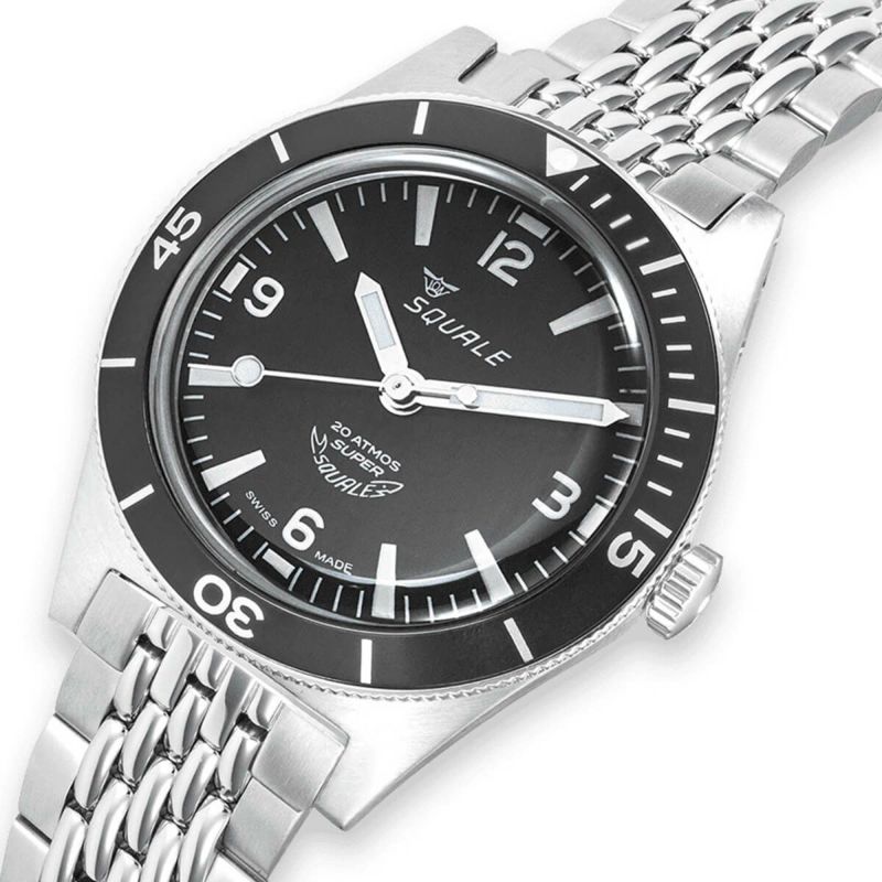 スイス・キアッソ発のダイバーズウォッチブランド「SQUALE(スクワーレ)」。 フランス語でサメを意味する同ブランドは1945年にスイス・ヌーシャテルでシャルル・フォン・ビューレン氏により、時計パーツのサプライヤーとして創立され、今では名だたるブランドのケース製造に携わってきた。やがて、ダイバーズウォッチに焦点を置き、オリジナルの時計を作り始めるようになる。そして世界で初めての1,000M防水時計を完成させた。 かの有名なダイバー、ジャック・マイヨール氏が1970年に伊豆半島沖が水深76mのフリーダイビングを成功させたときに使用していた時計もSQUALEだった。有名な時計ブランドのような華やかな歴史はないが、ダイバーズウォッチの質と基準を確立した代名詞となっている伝説のダイバーズウォッチブランド。現在のSQUALEは1970年代のデザインからインスピレーションを得ているものが多く、古き良きデザインを継承しつつ、ブランドのアイデンティティとも呼べる防水性、高品質な外装をしっかりと現代まで引き継いでいる。