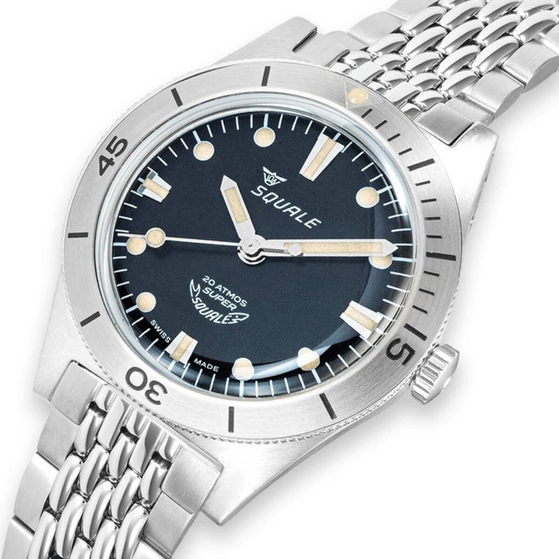 スイス・キアッソ発のダイバーズウォッチブランド「SQUALE(スクワーレ)」。 フランス語でサメを意味する同ブランドは1945年にスイス・ヌーシャテルでシャルル・フォン・ビューレン氏により、時計パーツのサプライヤーとして創立され、今では名だたるブランドのケース製造に携わってきた。やがて、ダイバーズウォッチに焦点を置き、オリジナルの時計を作り始めるようになる。そして世界で初めての1,000M防水時計を完成させた。 かの有名なダイバー、ジャック・マイヨール氏が1970年に伊豆半島沖が水深76mのフリーダイビングを成功させたときに使用していた時計もSQUALEだった。有名な時計ブランドのような華やかな歴史はないが、ダイバーズウォッチの質と基準を確立した代名詞となっている伝説のダイバーズウォッチブランド。現在のSQUALEは1970年代のデザインからインスピレーションを得ているものが多く、古き良きデザインを継承しつつ、ブランドのアイデンティティとも呼べる防水性、高品質な外装をしっかりと現代まで引き継いでいる。