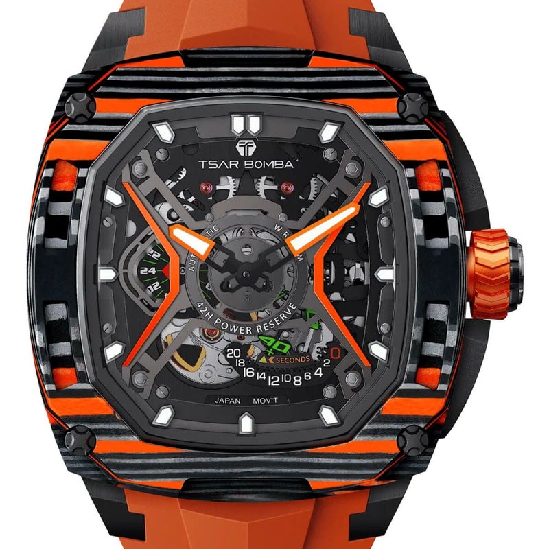 TSAR BOMBA(サーボンバ)は、その名の通り“圧倒的な存在感”を持つ2019年に誕生した香港発のウォッチブランドです。常識を超える原子力エネルギーにインスパイアされ、“時計も宇宙のようにダイナミックに変化をし続けるべきである”という理念を掲げています。肉厚でビッグサイズの大胆なウォッチケース、洗練された色使い、優れた耐久性、そして、時計製作における繊細な芸術が見事に融合しています。