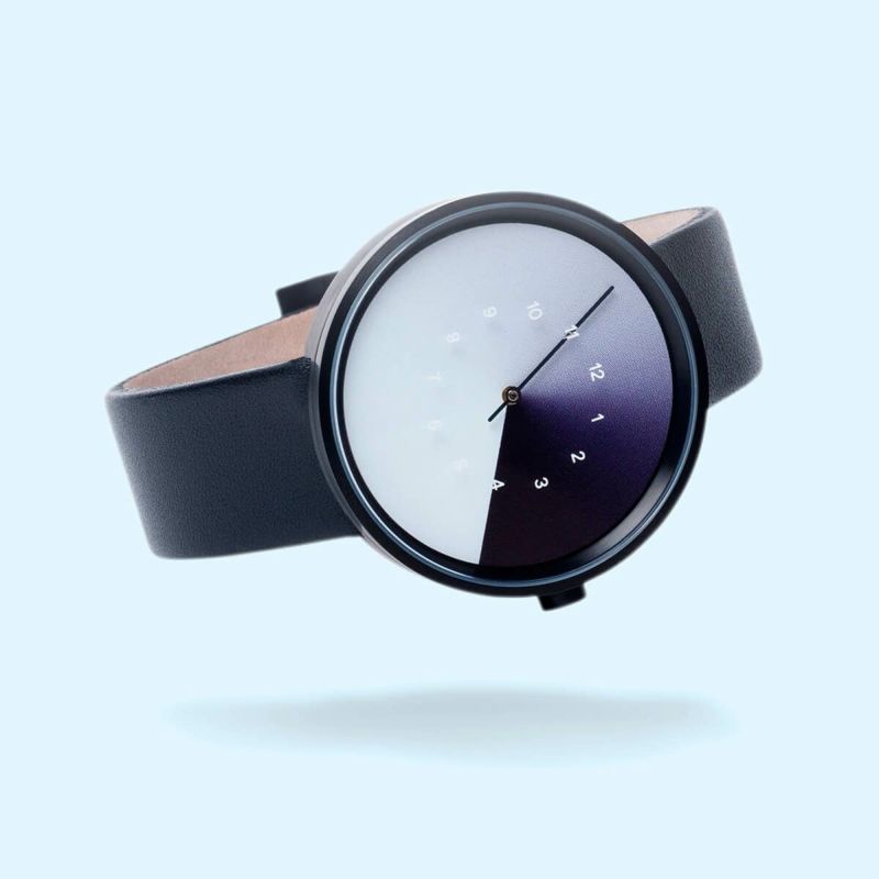 3つの異なるカラーバリエーションで提供されるこのデザイナーウォッチは、特徴的なグラデーションが際立っており、「白い時刻の数字がガラスの上に印刷された状態から徐々に現れていきます。デザインの暗い部分が時刻の下を通過するたびに、各時刻がその影の中から姿を現し、グラデーションが再び白に戻るとゆっくりと消えていく様子は、まさに芸術的な美しさです。