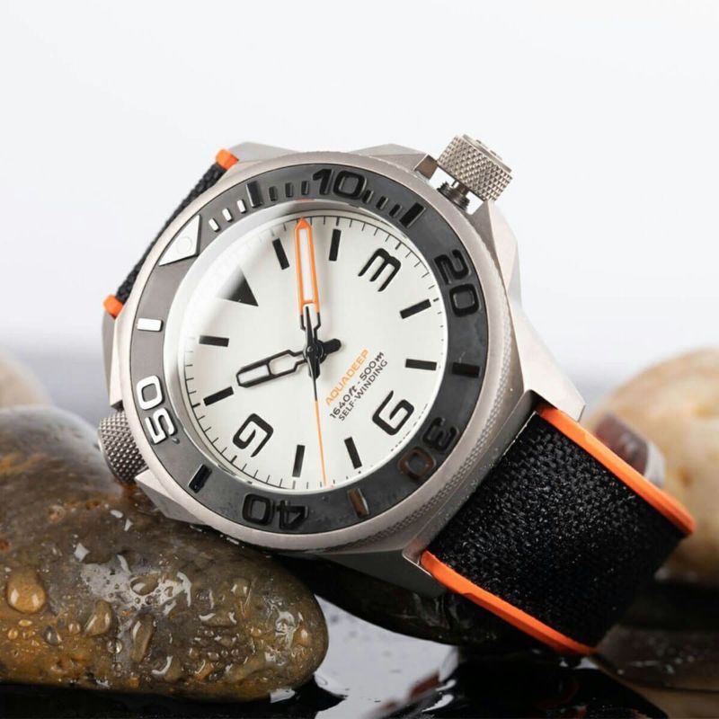 限りない興奮と可能性が広がる深海の相棒、AquaLume。過酷な環境にも耐える500m防水、右回転防止ベゼル、ヘリウムエスケープバルブなど、ダイバーズウォッチとしての多彩な機能を備えつつ、文字盤の蓄光が神秘的な海中を照らし出します。探求心や好奇心を刺激して、夢とロマンに満ちたアドベンチャーに飛び込みましょう。