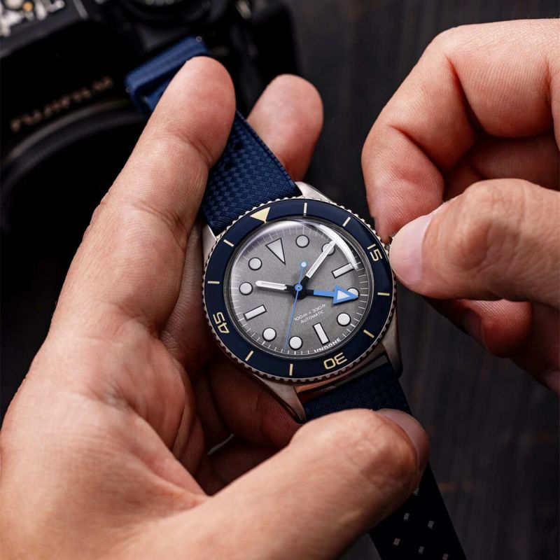 軽量で頑丈なチタンケースとGMT機能を搭載したNH34ムーブメント。 Basecamp Explorer はカスタマイズによりあなたの個性やスタイルに合ったデザインに仕上げることができます。また、“トロピック”と呼ばれる型押しラバーストラップを採用し、どんな環境でも卓越した快適さと耐久性を提供します。