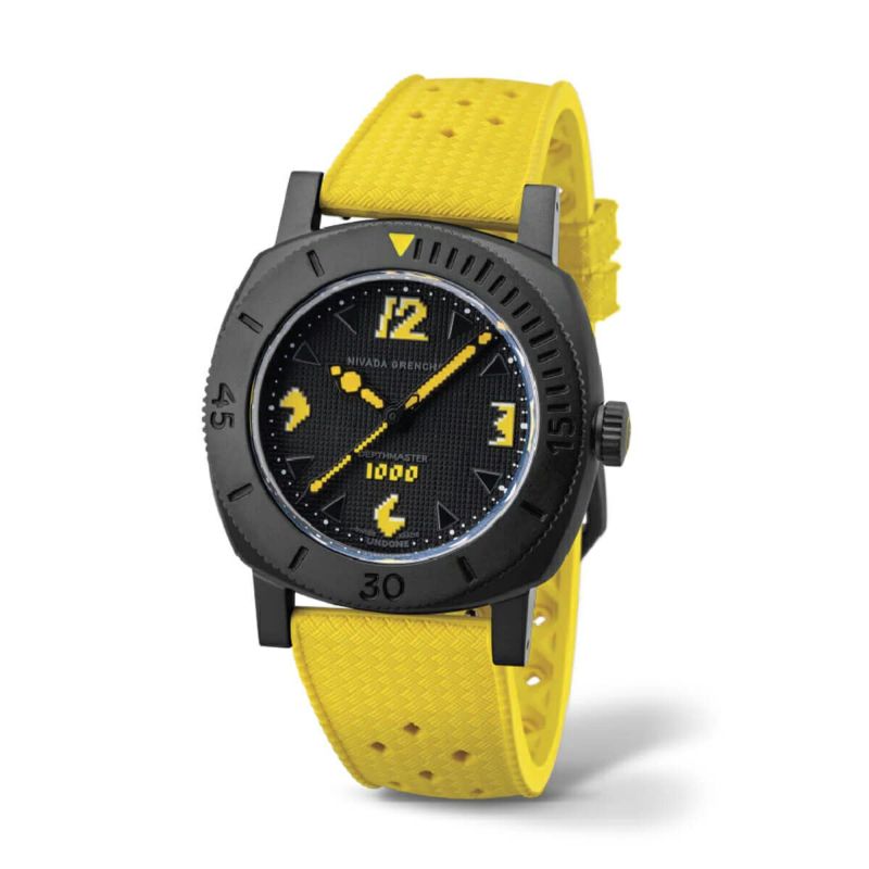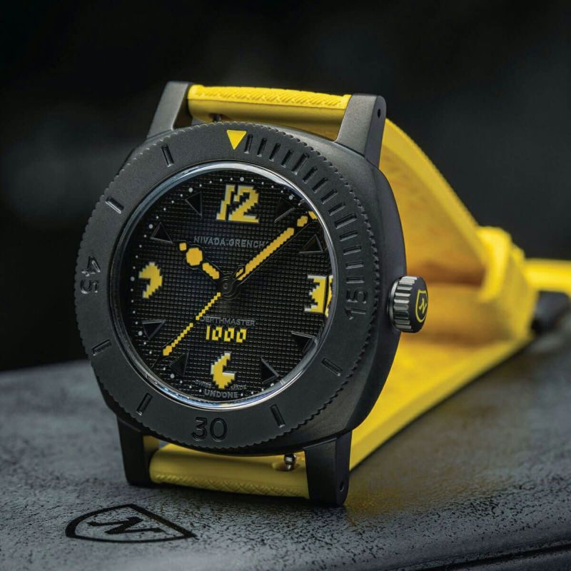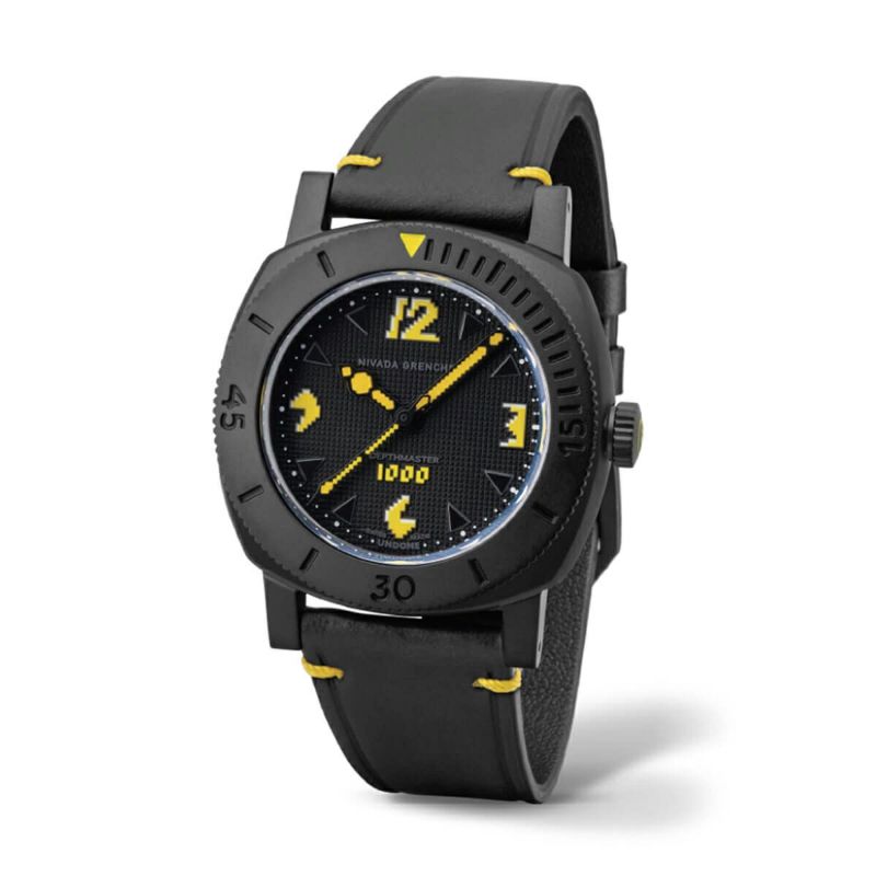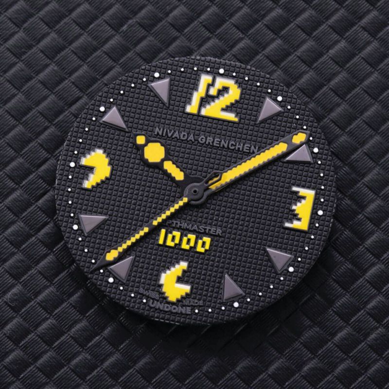 ニバダ・グレンヒェンが1965年に初めてリリースした「デプスマスター」通称「パックマン」が、往年のレトロゲームテイストを保ちつつ、現代的なアレンジが加えられ新たな姿へと蘇る。マットブラックのDLC加工が施され、スイス製ムーブメント「Soprod Cal.P024」を採用した、200本限定のコラボレーションモデルです。