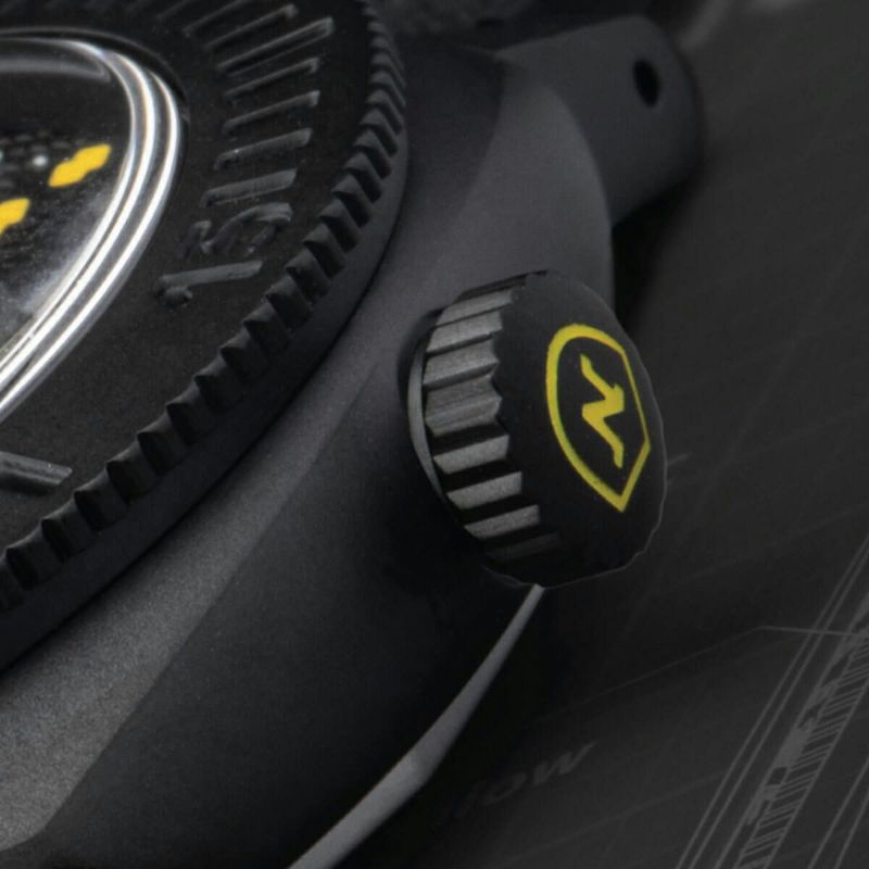 防水性能を高めた構造のスクリュー式ケースバックには、200本の限定数を示すシリアルナンバーを刻印。また、ニバダとアンダーンの共同制作の証として、それぞれのロゴがWネームで刻まれています。