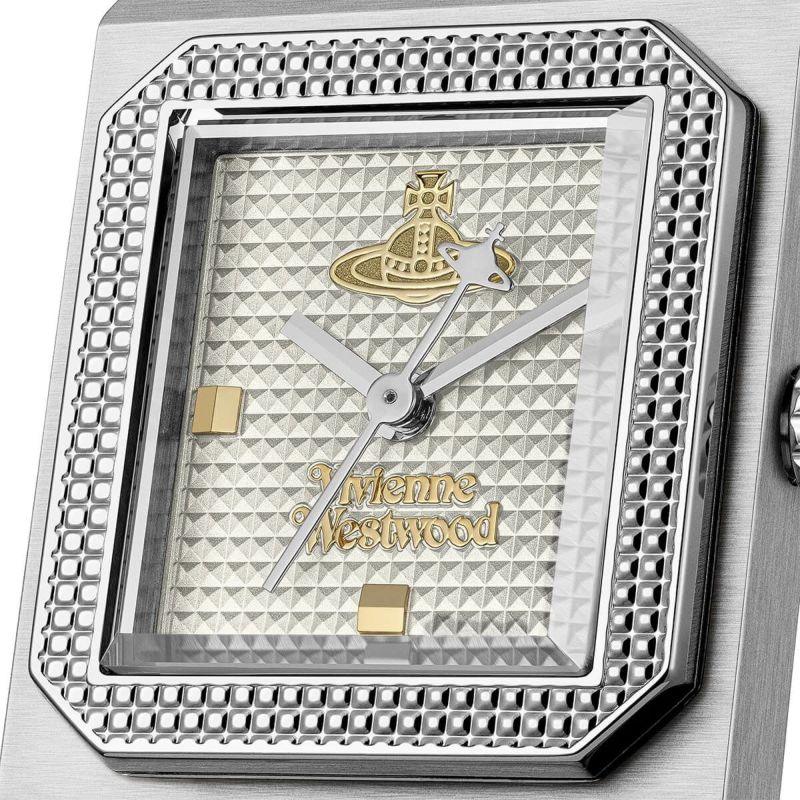 ダイヤルにはブランドを象徴する ゴールドのオーブ(ORB)モチーフ をレイアウト。繊細な四角形ケースのデザインと相まって、ヴィヴィアンらしい個性とラグジュアリー感を演出します。
