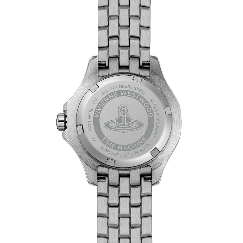 ダイヤルにはブランドを象徴する Vivienne Westwood のオーブモチーフ が配され、シルバーの輝きと調和しながらエレガントなアクセントを添えています。