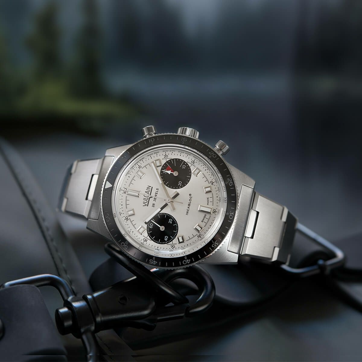 スイス発の老舗ウォッチブランド「ヴァルカン(VULCAIN)」。1858年にモーリス・ディティシャム兄弟によってスイスのラ・ショードフォンで設立された腕時計マイクロブランド。豊かな歴史と卓越した技術による優れた品質とデザインが特徴であり、創業以来、クロノメーターやクロノグラフなどの複雑な機構を作り出し、数々の賞に輝くマニファクチュールブランドとしての実績を築いてきた。創業から約1世紀が経過した頃、ヴァルカンは世 界で初めてアラーム機能を搭載した機械式腕時計「クリケット」を開発。アラーム音がコオロギの鳴き声に似ていることからその名前は付けられた。この革新的で優れた有用性を持つ腕時計は、世界中で大きな反響を呼び、歴代のアメリカ大統領が着用したことから「大統領の時計」とも呼ばれるまでに至った。2002年に本拠地をスイスのル・ロックルに移し、卓越した技術を活かした革新的なモノづくりを続けてきたが、近年はいくつかの困難に直面し、表舞台から姿を消していた。しかし、2022年にはブランドのアイコンである「クリケット」に新しいキャリバー「ヴァルカン自社製キャリバーV10」を搭載して復活。さらに、1970年代に活躍したツーカウンターデザインのクロノグラフモデルやヴィンテージ感漂うスキンダイバーを次々に発表した。ヴァルカンの腕時計は、時計愛好家をもうならす長い歴史と驚きの品質を備え、日常において上質な時間とスタイルを提供する。