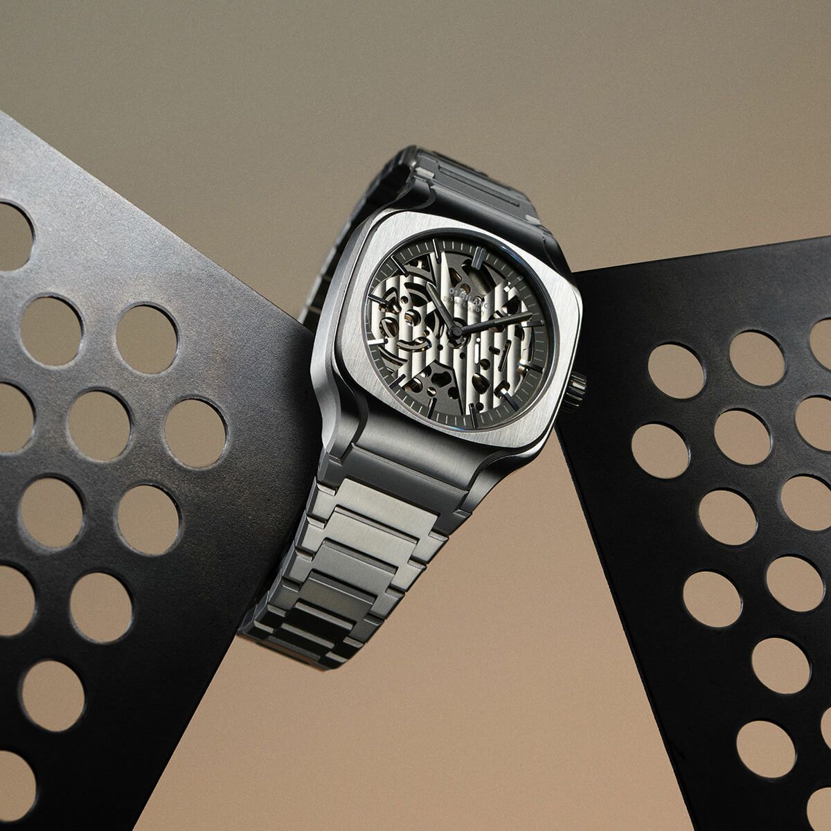 ユニセックスで機能美を追求する AARK Collective は、幾何学とグラフィックを軸にした遊び心あるデザインが特徴。大きなロゴ表記に頼らず、細部の造形や個性でブランドを表現する、シンプルさを愛する人に向けた洗練された時計です。