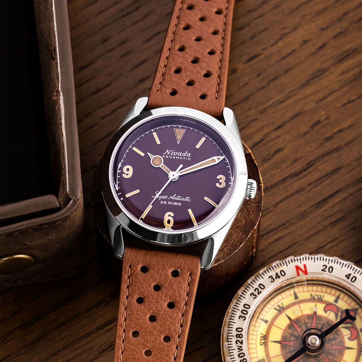 Sold out. 他の画像を見る Nivada Grenchen / ニバダ グレンヒェン スーパーアンタークティック 3.6.9 トロピカル ブラウン レザー レーシング ストラップ ¥ 159,500 税込