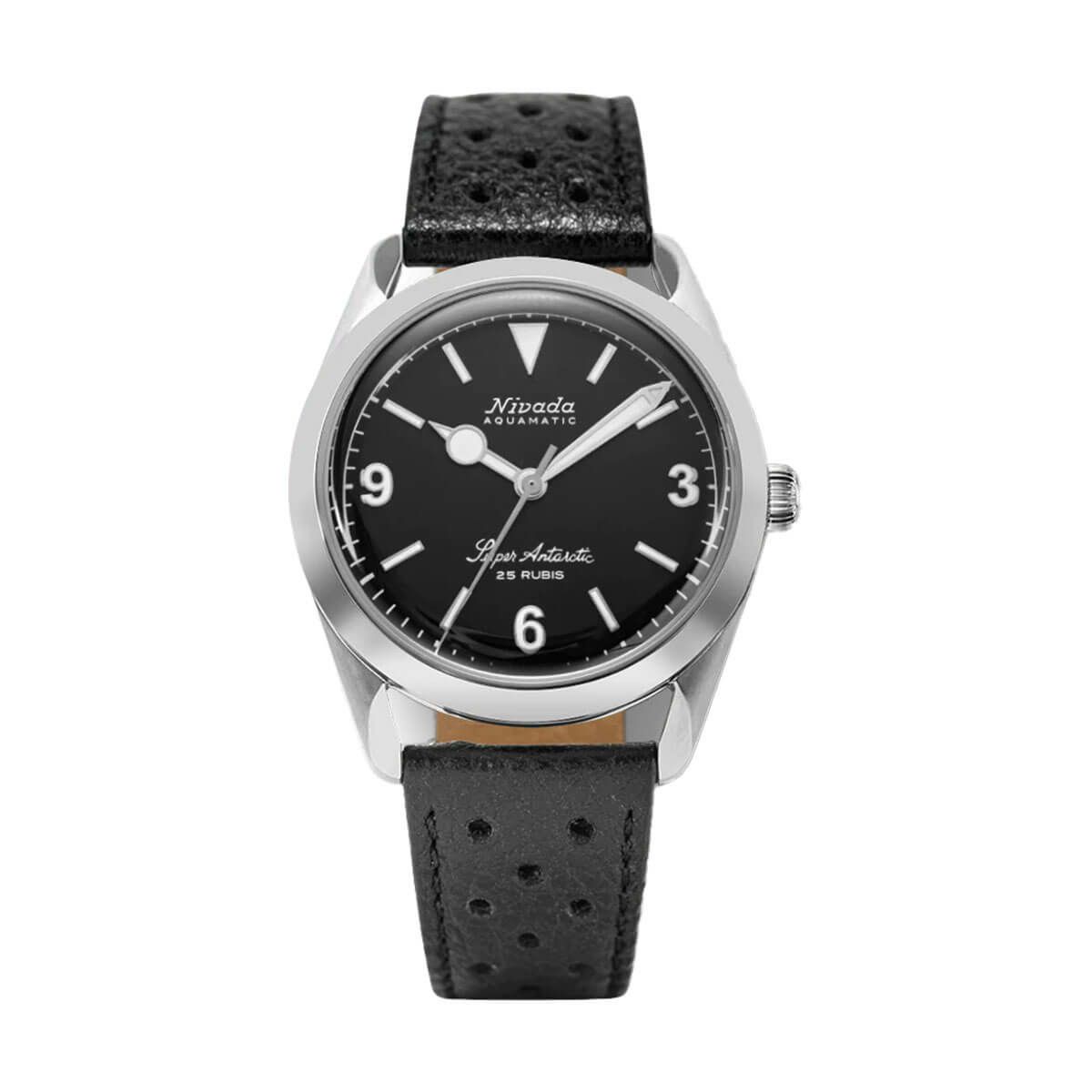 Sold out. 他の画像を見る Nivada Grenchen / ニバダ グレンヒェン スーパーアンタークティック 3.6.9 ブラック ノーヴィンテージ エフェクト ホワイト ルミナス ブラック レザー レーシング ストラップ ¥ 159,500 税込
