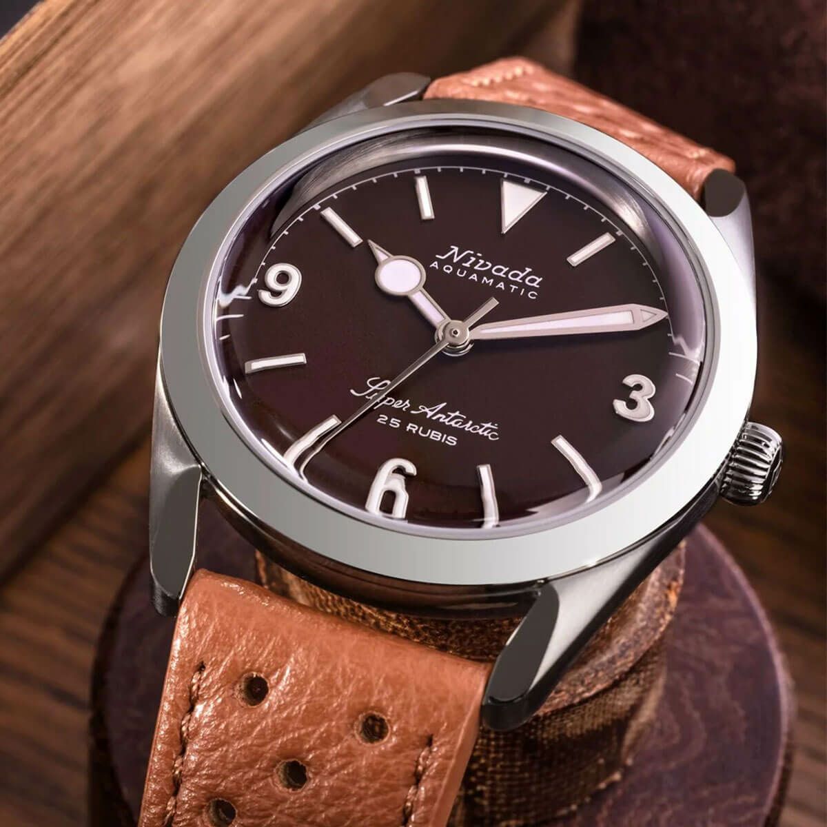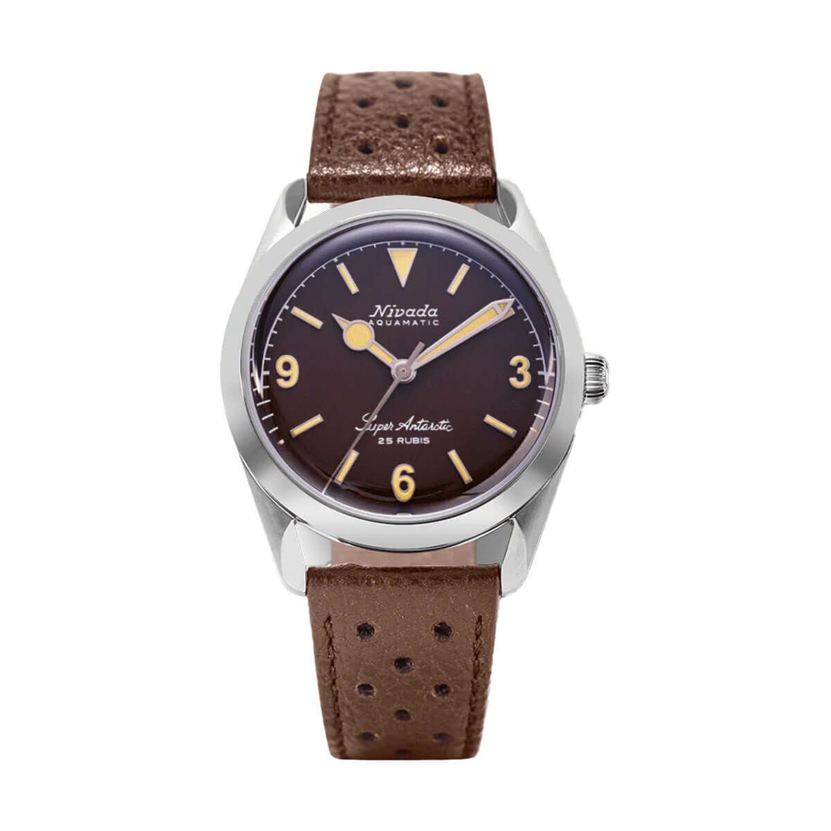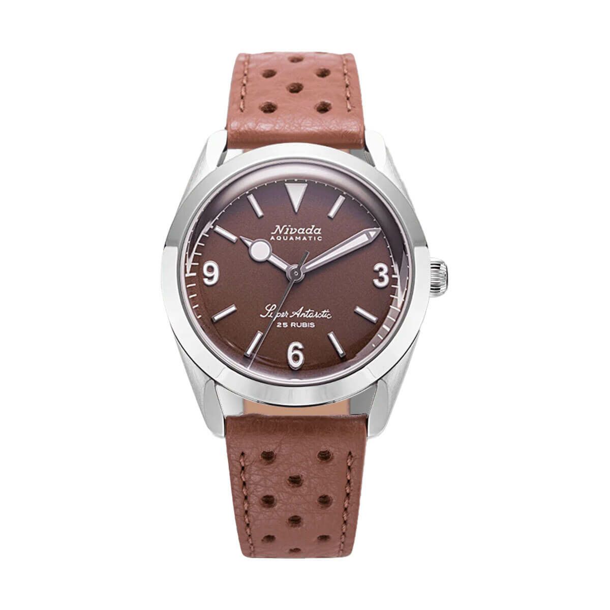 Sold out. 他の画像を見る Nivada Grenchen / ニバダ グレンヒェン スーパーアンタークティック 3.6.9 ブラウン ノーヴィンテージ エフェクト ホワイト ルミナス ブラウン レザー レーシング ストラップ ¥ 159,500 税込