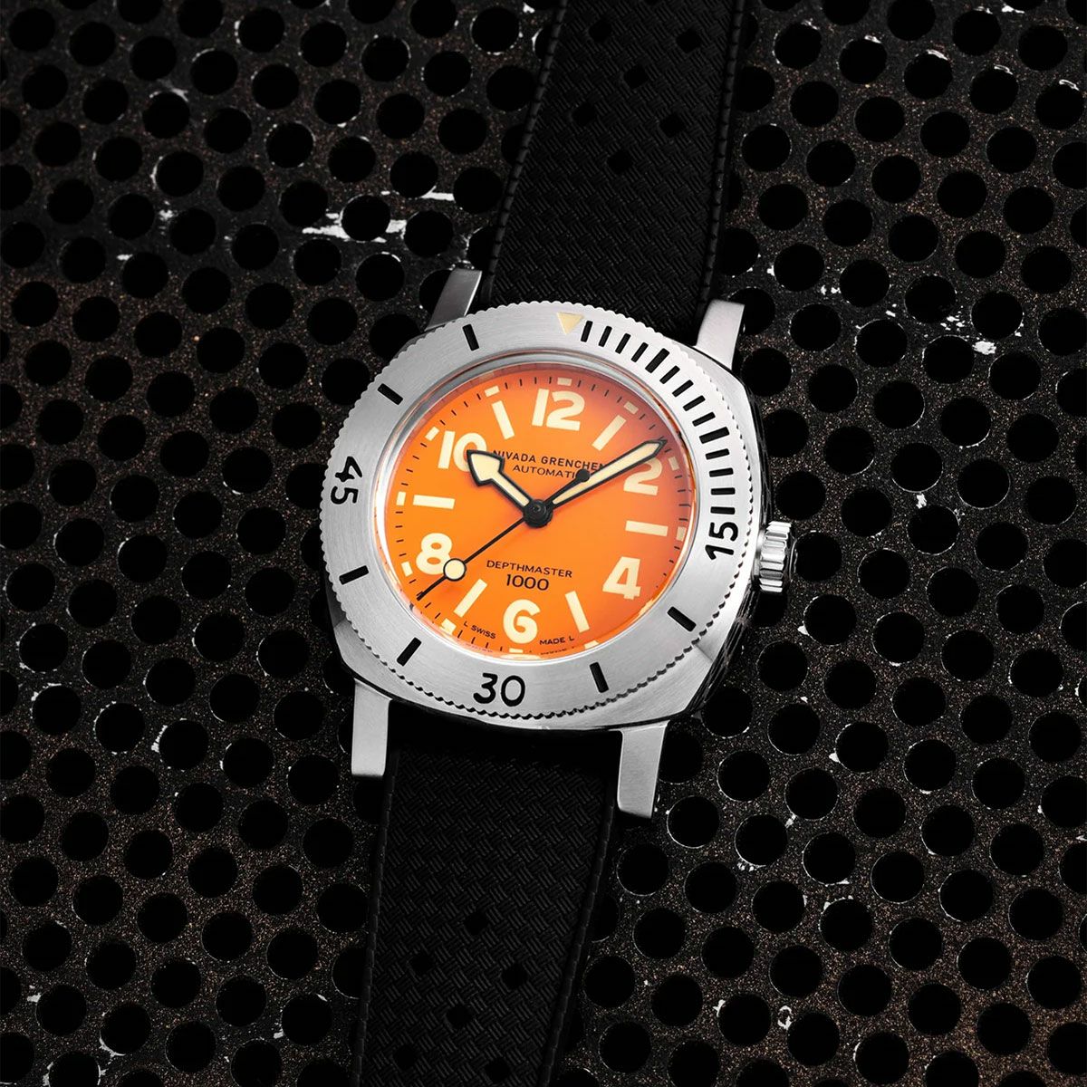 Sold out. 他の画像を見る Nivada Grenchen / ニバダ グレンヒェン デプスマスター Mk.1 オレンジ ダイヤル リミテッド エディション ブラック トロピックラバーストラップ ¥ 180,400 税込