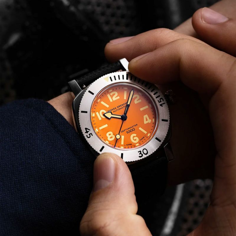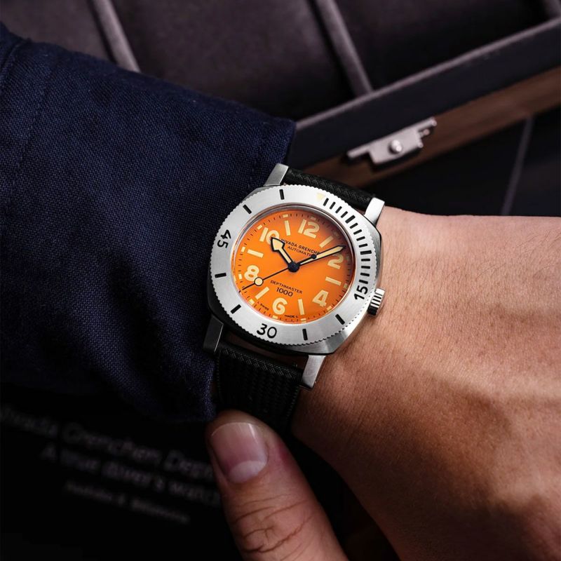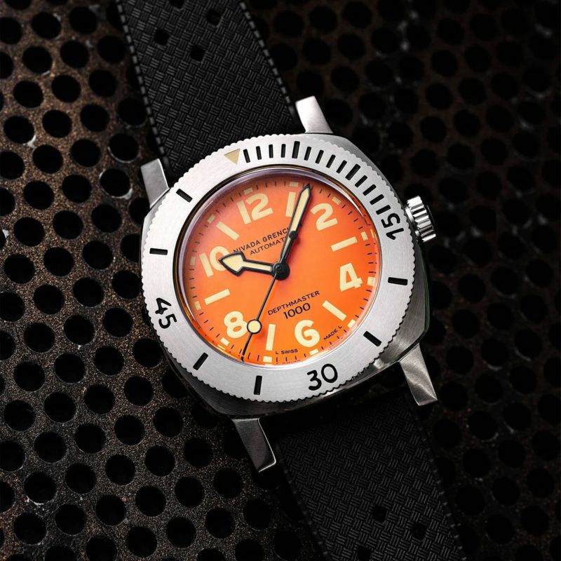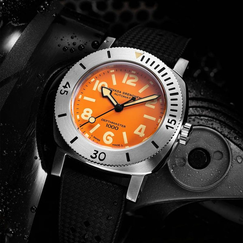 Nivada Grenchen / ニバダ グレンヒェン デプスマスター Mk.1 オレンジ ダイヤル リミテッド エディション ブラック トロピックラバーストラップ