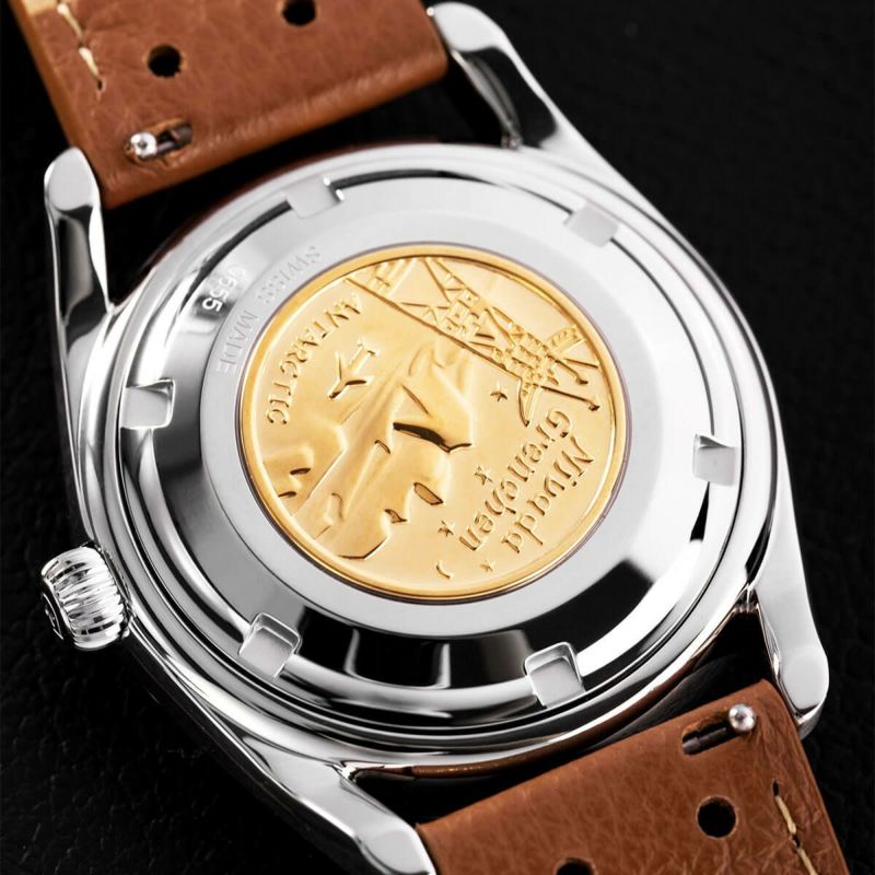 スーパー・アンタークティックは、1950年に発表されたオリジナルのニヴァーダ・アンタークティック・コレクションの、そう遠くないいとこである。オリジナルは、アメリカ海軍のディープフリーズ1タスクフォースのメンバーが南極探検(1955-56年)で使用したことで一躍有名になりました。この時計は、最も過酷な条件下でも性能を発揮できる信頼性と堅牢性を備えていることが評価されたのである。今日のスーパー・アンタークティックは、50年代のラインとデザインを踏襲しながら、オリジナルのアンタークティックを進化させたものです。オリジナルのアンタークティックと同様に、現代のスーパーアンタークティックの裏蓋には、1957年の国際地球物理学メダリオンが直接刻まれています。