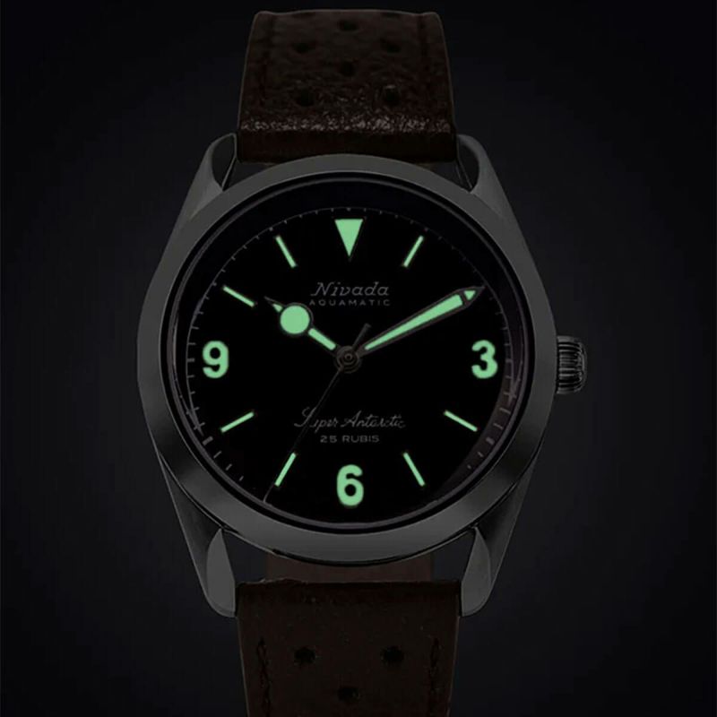 スイスのグレンヒェンで設計・製造されたスーパーアンタルクティックは、そのルーツを忠実に受け継いでいます。スーパーアンタークティックは、スイス製ソプロッドP024 3針自動巻きを搭載しています。ニヴァーダ・グレンヘンの時計はすべてスイス製です。100m(10気圧)防水とねじ込み式リューズを備え、液体であれ固体であれ、どんな水にも対応できます。