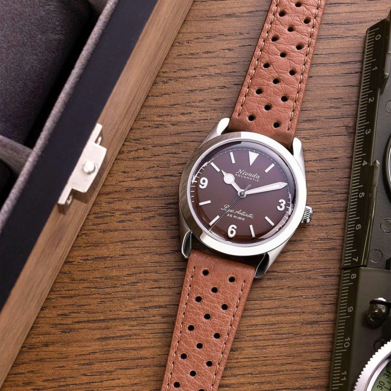 Nivada Grenchen / ニバダ グレンヒェン スーパーアンタークティック 3.6.9 ブラウン ノーヴィンテージ エフェクト ホワイト ルミナス ブラウン レザー レーシング ストラップ
