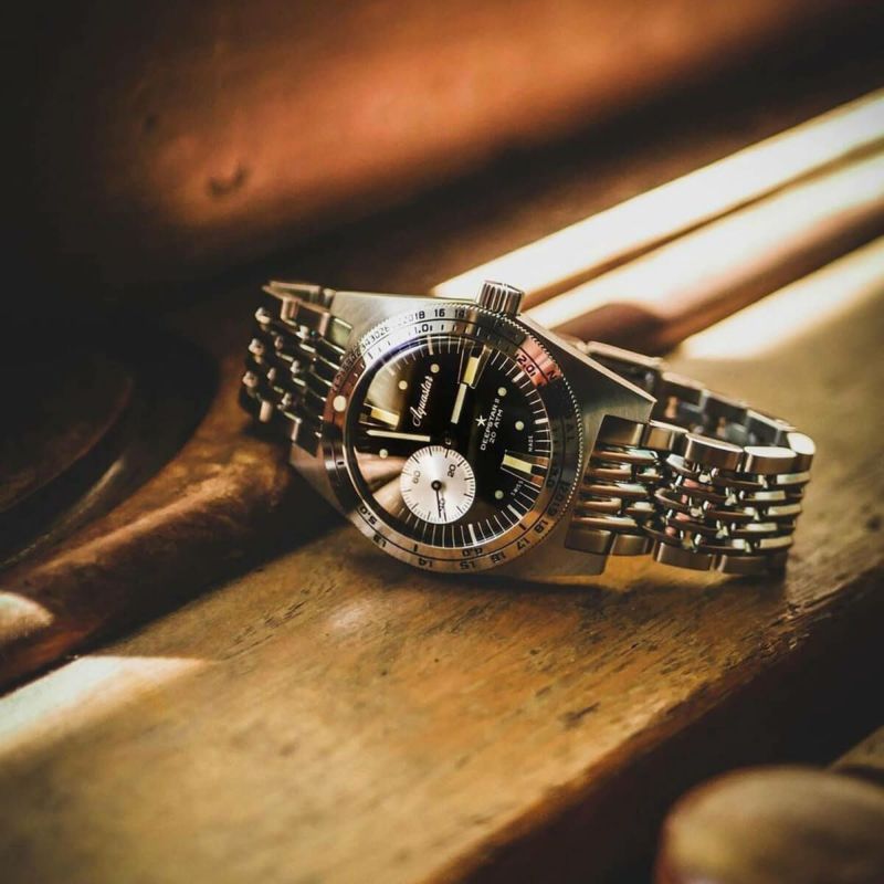 1962年にスイスで創業したAQUASTARは、数々の特許技術を持つ老舗ダイバーズブランド。プロ仕様のダイバーズやレガッタ向け時計を次々と生み出し、その革新性と実用性は今なお高く評価されています。