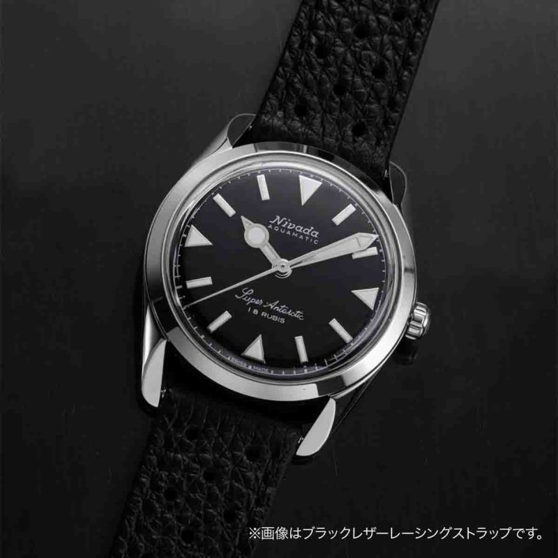 Nivada GrenchenはSuper Antarcticの現代的な復刻版を発売しました。それにまつわる興味深い話があります。ファンの一人がインスタグラムにヴィンテージのSuper Antarcticを投稿すると、ギヨームはそれをNivada Grenchenの公式インスタグラムアカウントのストーリーとして共有し、ファンは大興奮しました。モデルの再発行を求めるリクエストが殺到しました。Nivadaはファンの要求に応え、間もなくSuper Antarcticが発売されました。 そのブラックダイヤルはシンプルですが印象的です。Nivadaの名前の下には「Aquamatic」(防水+自動巻き)という言葉があります。6時の上には「Super Antarctic」という署名フォントがあり、その下には「25 RUBIS」と印刷されています。最も印象的な美的特徴は、剣とロリポップの形をした分針と時針です。ケースバックは、彼らのシグネチャーであるゴールデンメダリオンで飾られています。