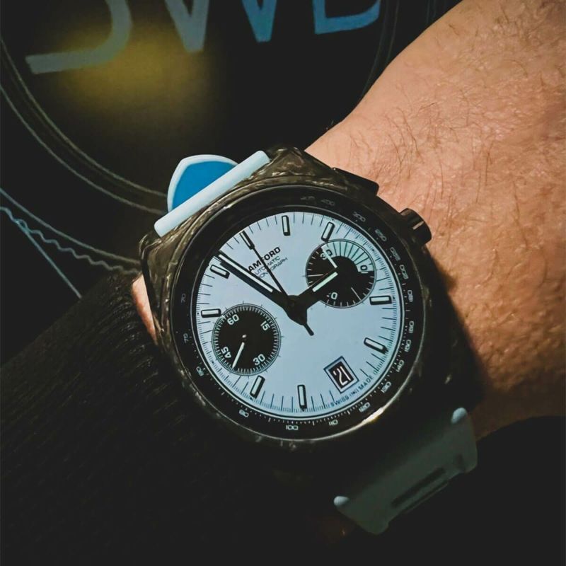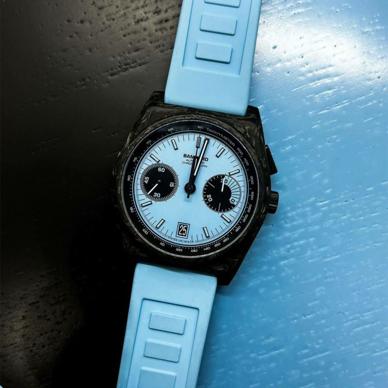 BAMFORD / バンフォード B347 ブラック カーボン アクアブルー クロノグラフ ラバー ストラップ
