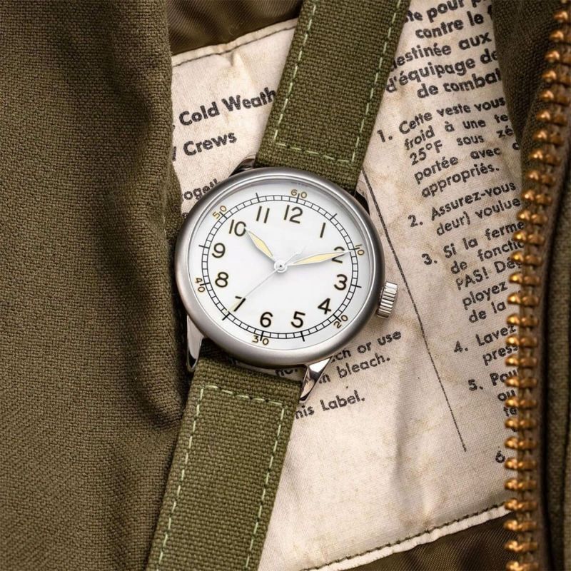 当初、A-11は基本的な手巻きのハッキング機能付きムーブメントを搭載していましたが、これらのムーブメントは時には信頼性に欠け、戦闘の厳しい環境では壊れやすいものでした。そこで、私たちはアリゾナ州を拠点とするFTS社の超精密で頑丈なアメリカ製クォーツムーブメント、Ameriquartz 6130をA-11 Specに採用しました。1940年代のオリジナルと同様に、A-11 Specもアメリカ製ムーブメントを搭載し、ペンシルベニア州にある自社組立ラインで組み立てられます。アメリカの時計製造が終わったなんて誰が言ったのでしょうか?