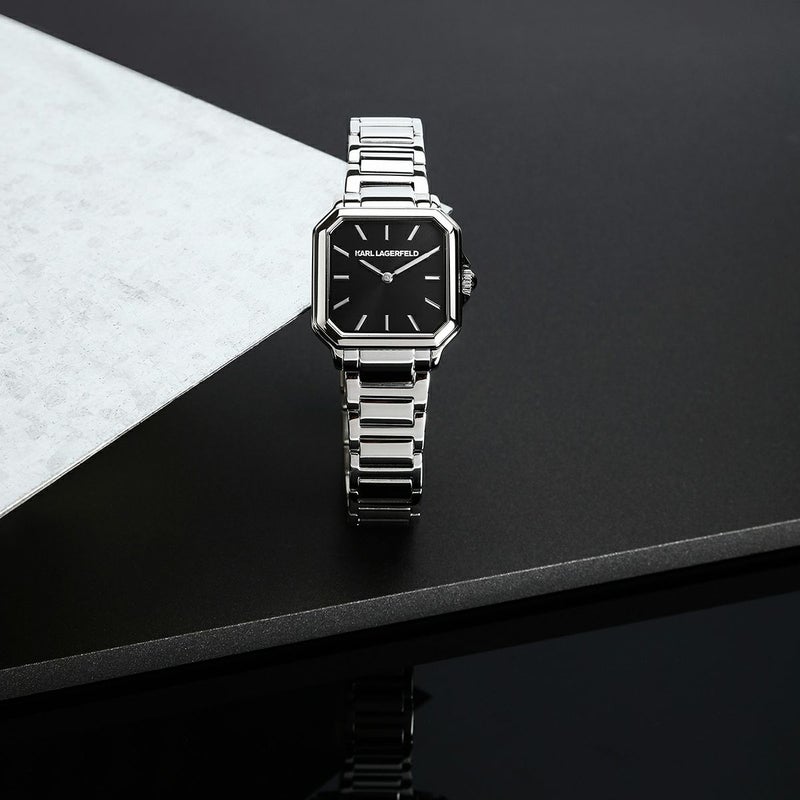 KARL LAGERFELD / カール・ラガーフェルド スクエア クラシック ブラック サンレイ ダイヤル シルバー ブレスレット