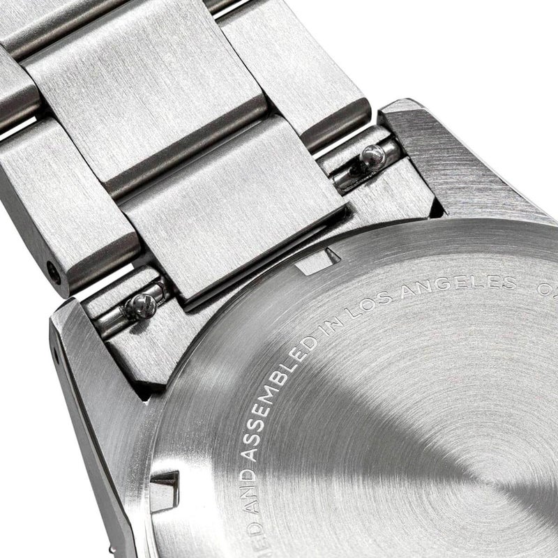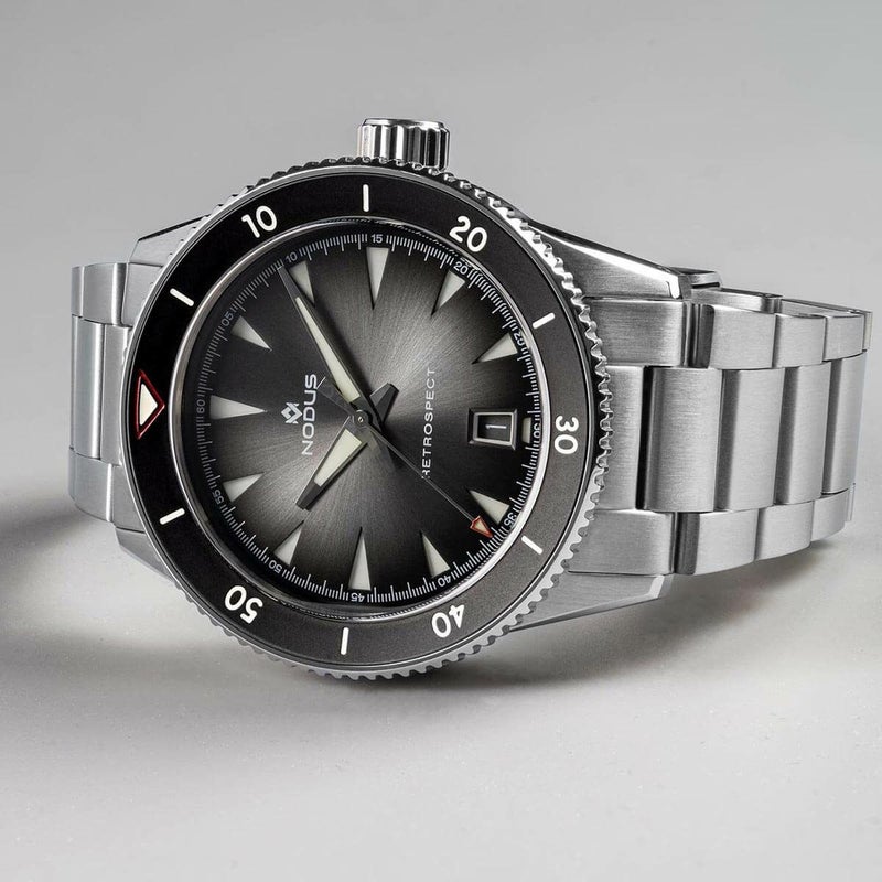レトロスペクトIIIの特徴である内側に傾斜したベゼルは、マットなDLCインサートをダメージから守ると同時に、アグレッシブで視認性の高い文字盤に視線を引き寄せます。スリム化されたケースは時計に最高の着用感を与え、オーバーサイズのベゼルは簡単な機能性を提供します。 スリムなケースデザイン、マットブラックのDLCスティール製インサート、当社独自のNodeXエクステンションクラスプを備えたプレミアム3リンクブレスレットを特徴としています。
