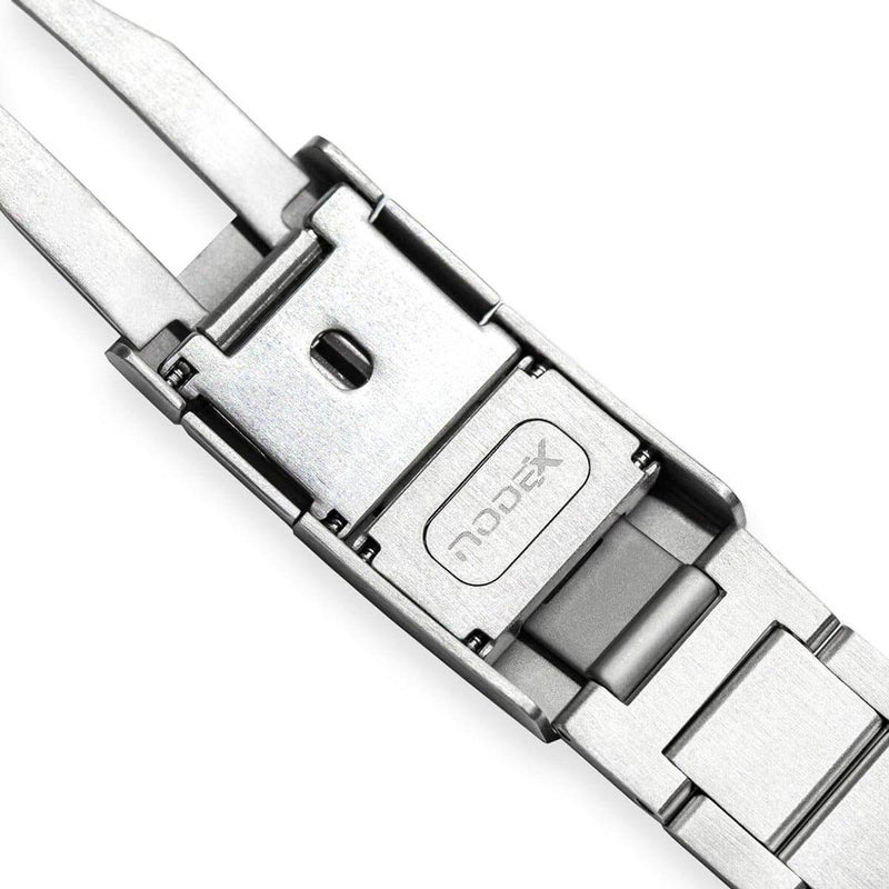 当社独自のNodeXクラスプは、装着者の快適性を高めるために、その場で素早く簡単にクラスプを調整することができます。スペースの最適化を念頭に置いて設計されたモジュールは、外科手術用グレードのステンレススチール製の洗練されたケースに収まります。5つのロックポジションにより、ボタンを押すだけで簡単に完璧なフィット感を見つけることができます。