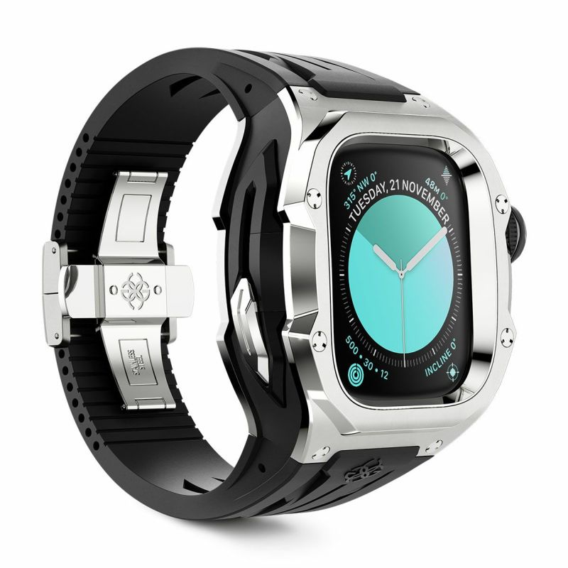 ゴールデンコンセプトでは、Apple Watchに新しく ユニークな外観を与えるための時計ケースとストラ ップを豊富に取り揃えています。お手持ちのApple Watchに「付属のネジを止めるだけで簡単に装着が可能」。Apple Watchとは思えない”高級時計”に仕上がります。このクラシックなデザインは、あらゆるライフスタイルにマッチします。