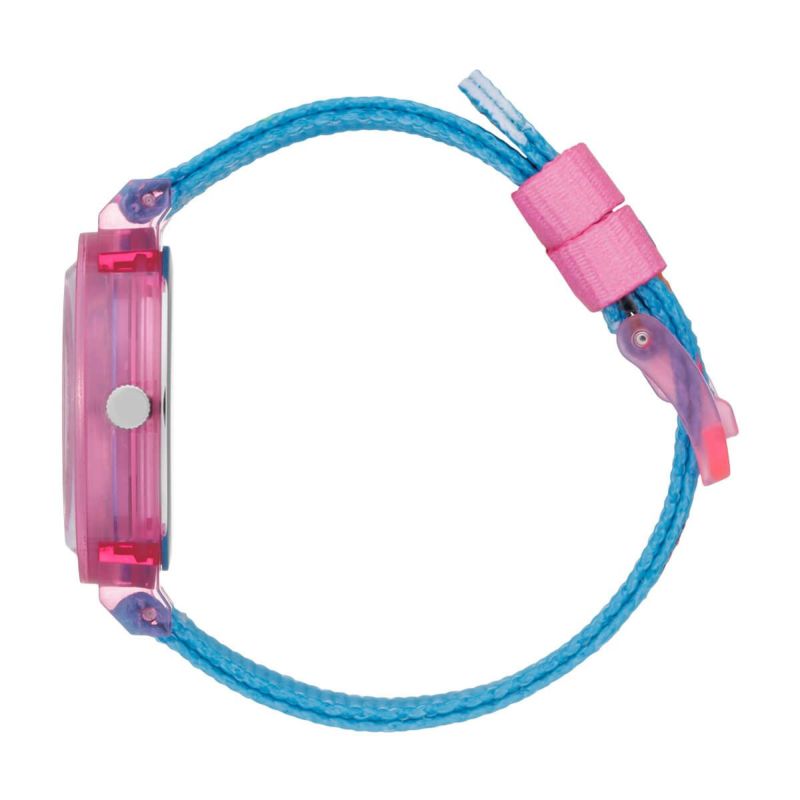 「アイスラーニング」は、時間を学び始めた子供たちに向けてデザインされた、カラフルで遊び心あふれるキッズウォッチです。時計の文字盤には、大きな丸数字で“〇時”を、5分ごとの数字で“〇分”を表示し、視覚的にわかりやすく工夫されたドットインデックスが、子供たちの時間認識をサポートします。32mmのコンパクトなケースには、軽量でありながら高い耐久性を誇るポリアミドプラス素材を採用。お子様が日常生活の中で快適に着用できるよう、軽やかなフィット感を実現しました。さらに、シャーク、サッカーボール、レインボー、フラワーな