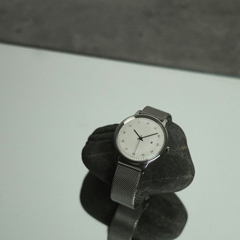 sazare / さざれ SK01 SS シルバー ミラー フィニッシュ ホワイトダイヤル シルバーメッシュ