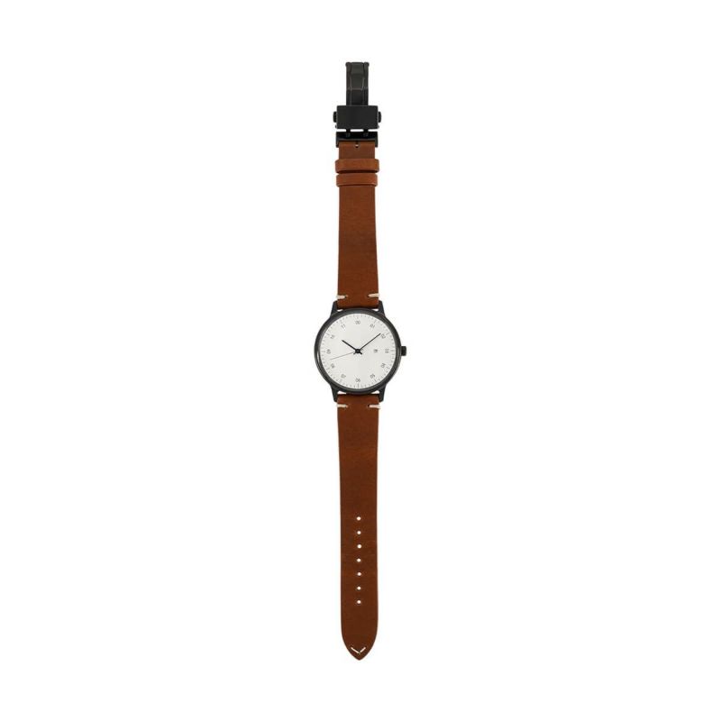 sazare / さざれ SK01 SS ブラック ホーニング フィニッシュ ホワイト ダイヤル /ブラック D バックル ライトブラウン ブッテーロレザー